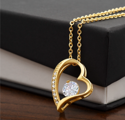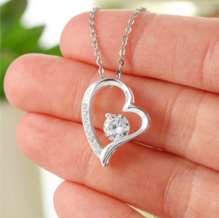 The dazzling Forever Love NecklaceĀ is sure to make her heart melt! This necklace features a stunning 6.5mm CZ crystal surrounded by a polished heart pendant embellished with smaller crystals to add extra sparkle and shine. Beautifully crafted with either a white gold or yellow gold finish, be sure to give her a classic gift she can enjoy everyday.